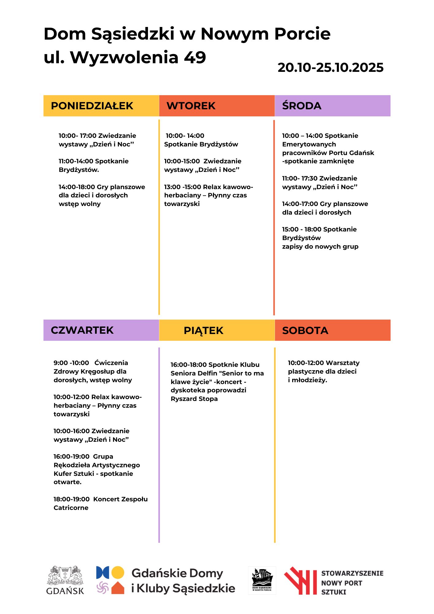 Przedstawiamy kolejny tygodniowy plan spotkań i zajęć regularnych przy ul. Wyzwolenia 49.