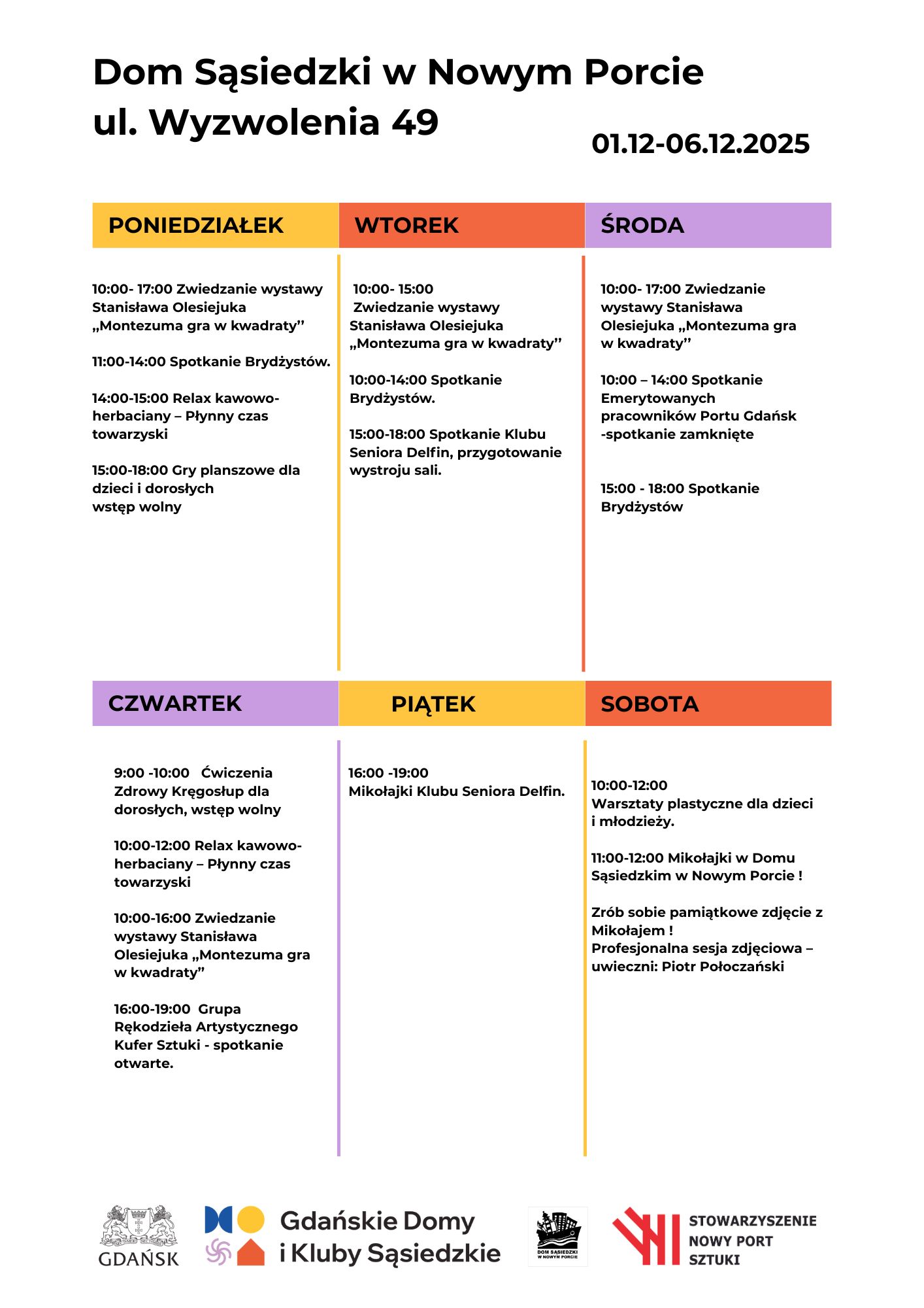 Harmonogram wydarzeń w Domu Sąsiedzkim w Nowym Porcie